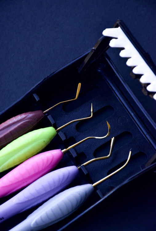 Applica twist : از این قلم به عنوان قلم یونیورسال ترمیم های کامپوزیتی استفاده میشود . سر نازک و با زاویه آن اجازه دسترسی به نقاط سخت دندانی را به ما می دهد .